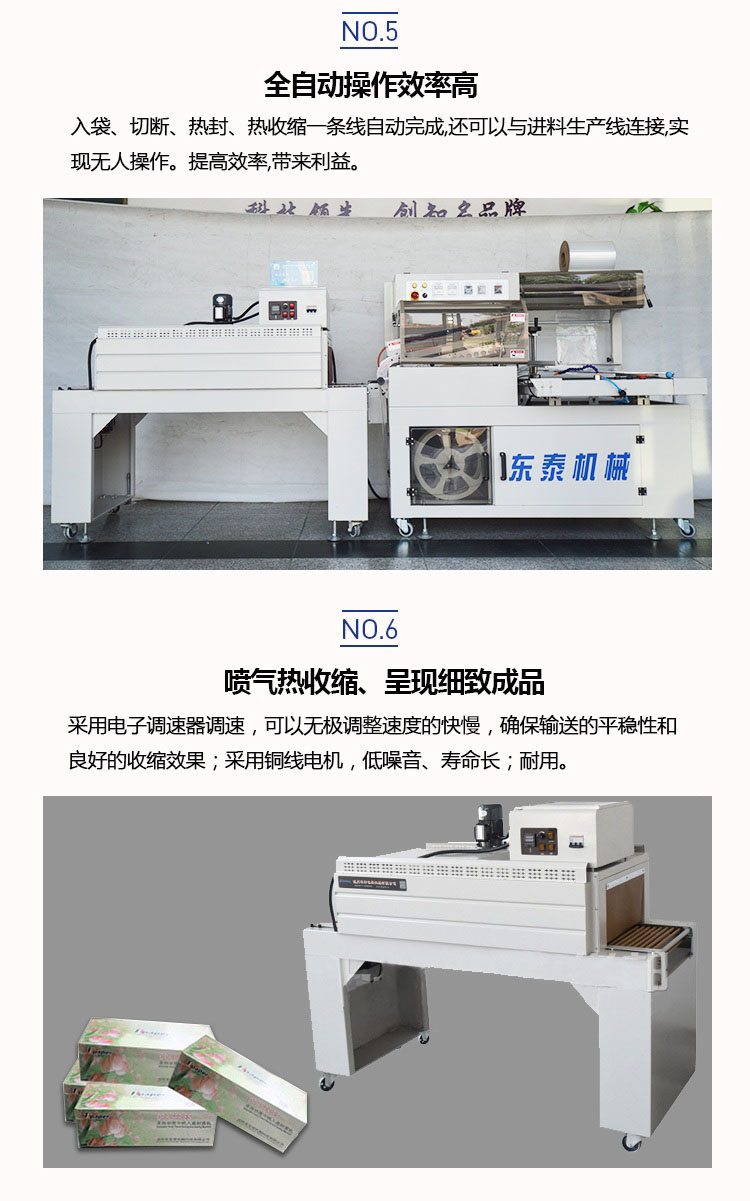 自動(dòng)塑料膜熱收縮包裝機(jī)結(jié)構(gòu)緊湊占地面積小,非常適合配套自動(dòng)包裝流水線完成產(chǎn)品的自動(dòng)無(wú)人化包裝,適合于單個(gè)物品包裝或有底托物品包裝。